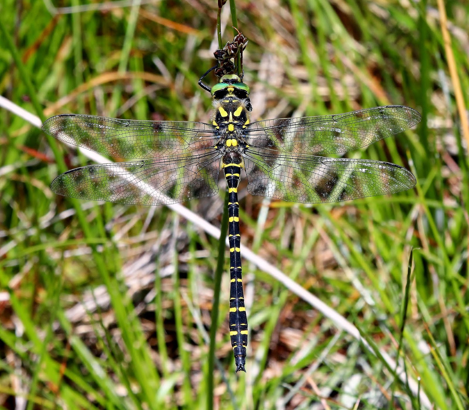 Meurig Garbutt recently journeyed to Titterstone Clee Hill in search of the aptly named Scarce Blue-tailed Damselfly. Unfortunately she had no luck in that department, but amongst the Blue-tailed, Common Blue and Large Red Damsels and Emperors she managed to catch a lovely couple of photos of Golden-ringed Dragonflies which clearly show the differences between the male and female: