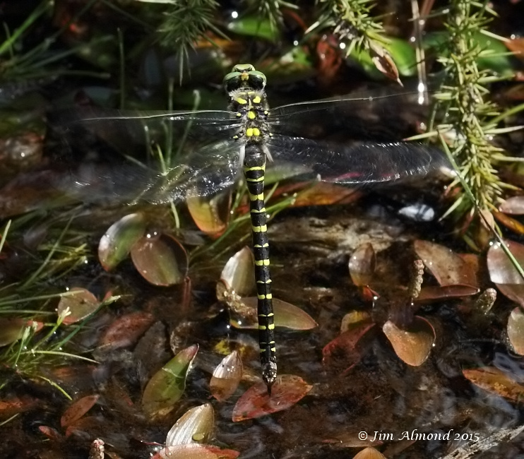 A female Golden-ringed Dragonfly Cordulegaster boltonii ovipositing on Catherton Common. This species has a fairly distinctive ovipositing motion, almost appearing to be bouncing up and down on a pogo stick whilst placing eggs into the substrate.