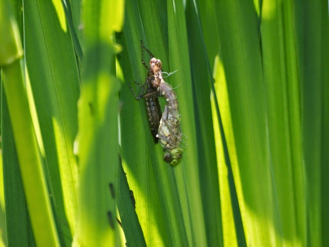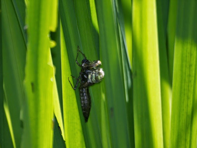 After a couple of suspected hawker sightings from Jonathan Groom in the last few days we now have definite proof that hawkers are on the wing. Warwick Davies spotted the emerging larvae on his pond near Oswestry on June 5th and set up his camera to get some great shots- as he said a privilege to watch-albeit for a number of hours!