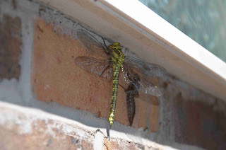 Whenever slightly ‘different things’ occur it seems to be Southern Hawkers in the middle of it! P.Roberts has been in touch reporting this species emerging under his garage window some distance from the pond….